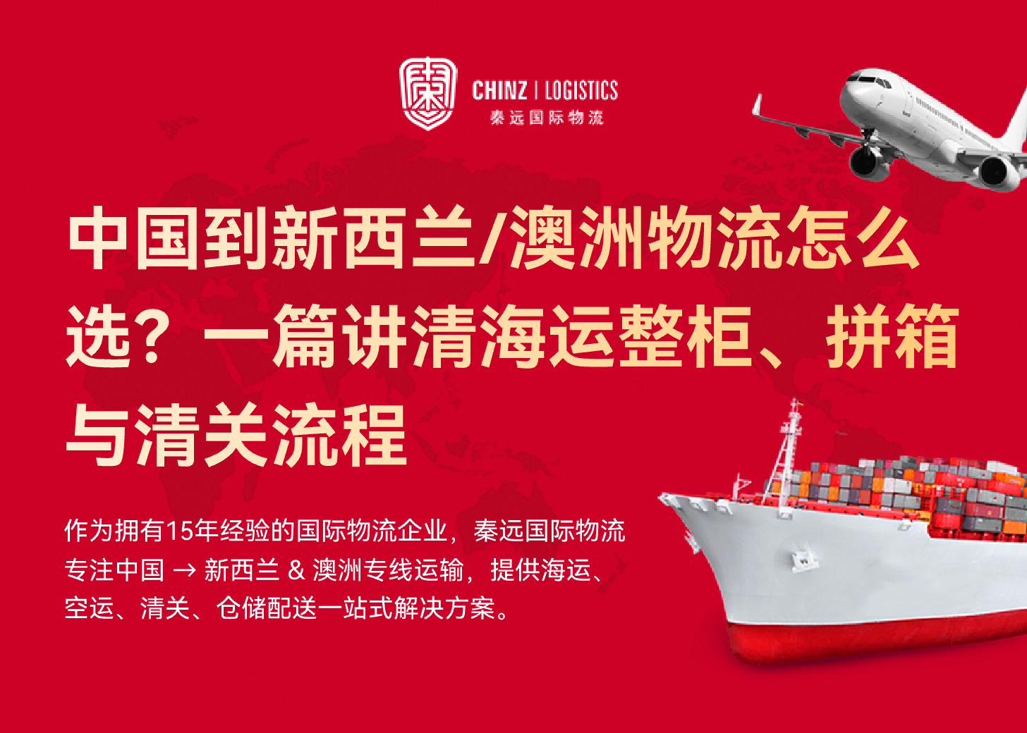 秦远国际物流是一家总部位于新西兰的领先物流服务提供商,致力于连接中国和澳大利亚及新西兰之间的物流需求。公司成立于15年前,专注于海运和空运服务,在过去的15年里,一直致力于为客户提供可靠高效的物流解决方案。